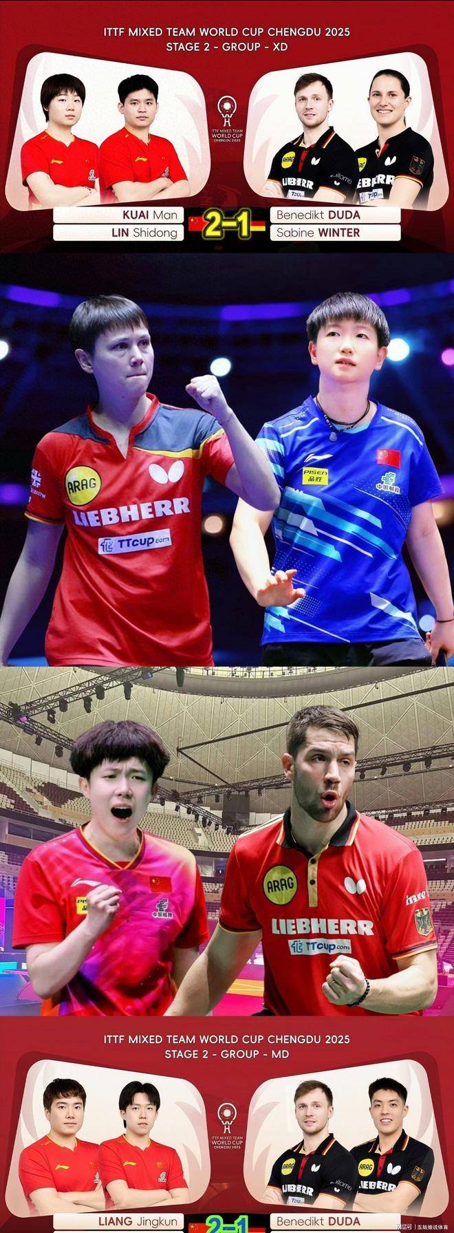 北京时间12月5日,2025年国际乒联成都混合团体世界杯进入第二阶段的8强循环赛,第4轮的比赛展开激烈角逐,8支队伍分别对阵,争夺晋级机会。中国队在遭遇首场失利后,以8-4击败了强敌德国队。中国香港队经过15局激战,最终以8-7险胜法国队。与此同时,日本队和韩国队的表现也十分亮眼,最终中国队和日本队保持不败,稳居小组榜首,已经提前晋级四强。韩国队、德国队、法国队和中国香港队则因输掉两场比赛,将争夺剩下的两个晋级名额。克罗地亚队和瑞典队由于连续失利,基本上提前告别了四强的争夺。